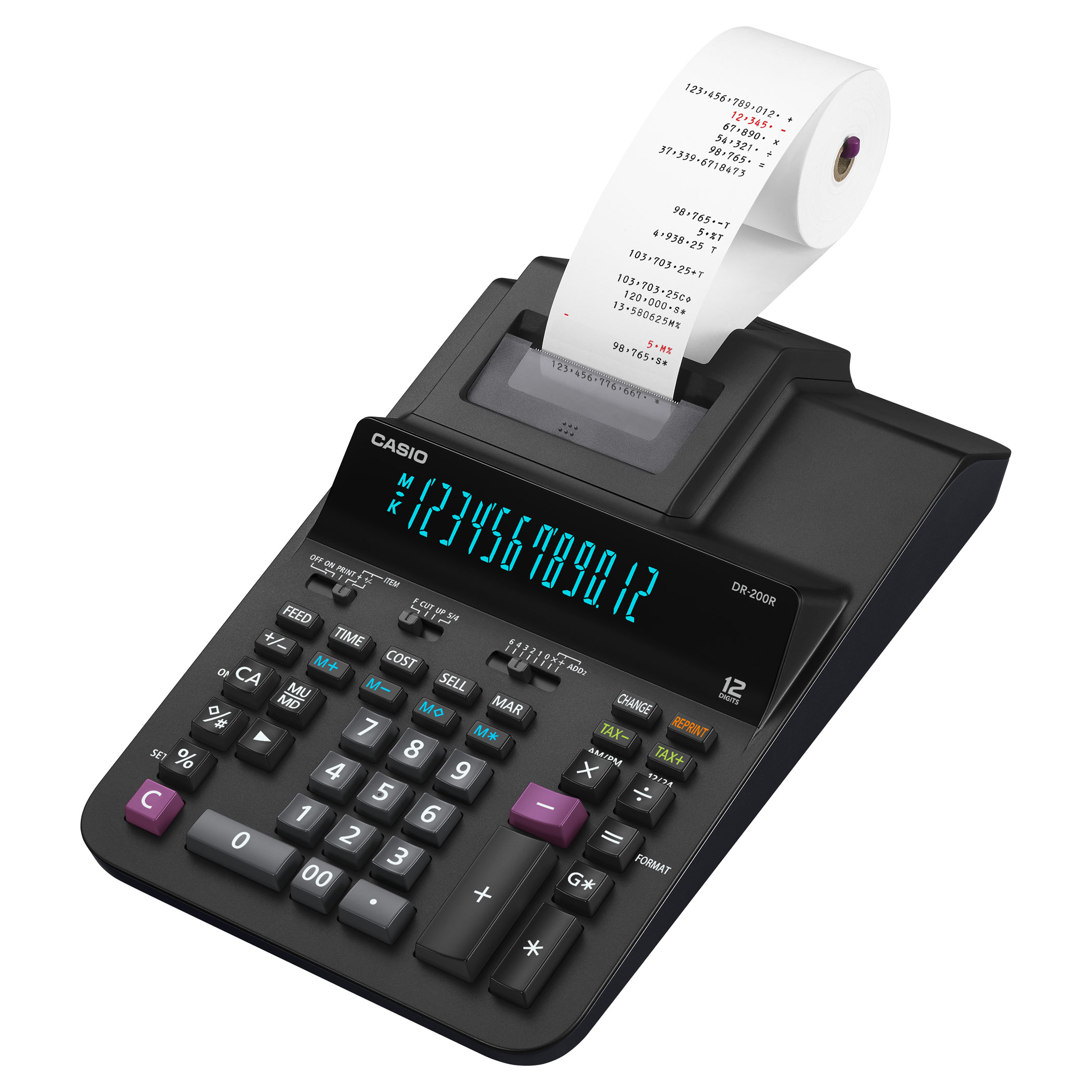- Stolná kalkulačka s tlačou a veľkým 12-miestnym displejom