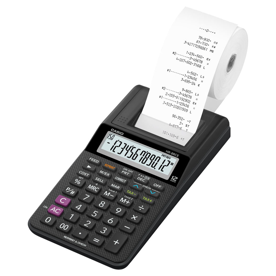- Prenosná kalkulačka s tlačou s 12-miestnym displejom